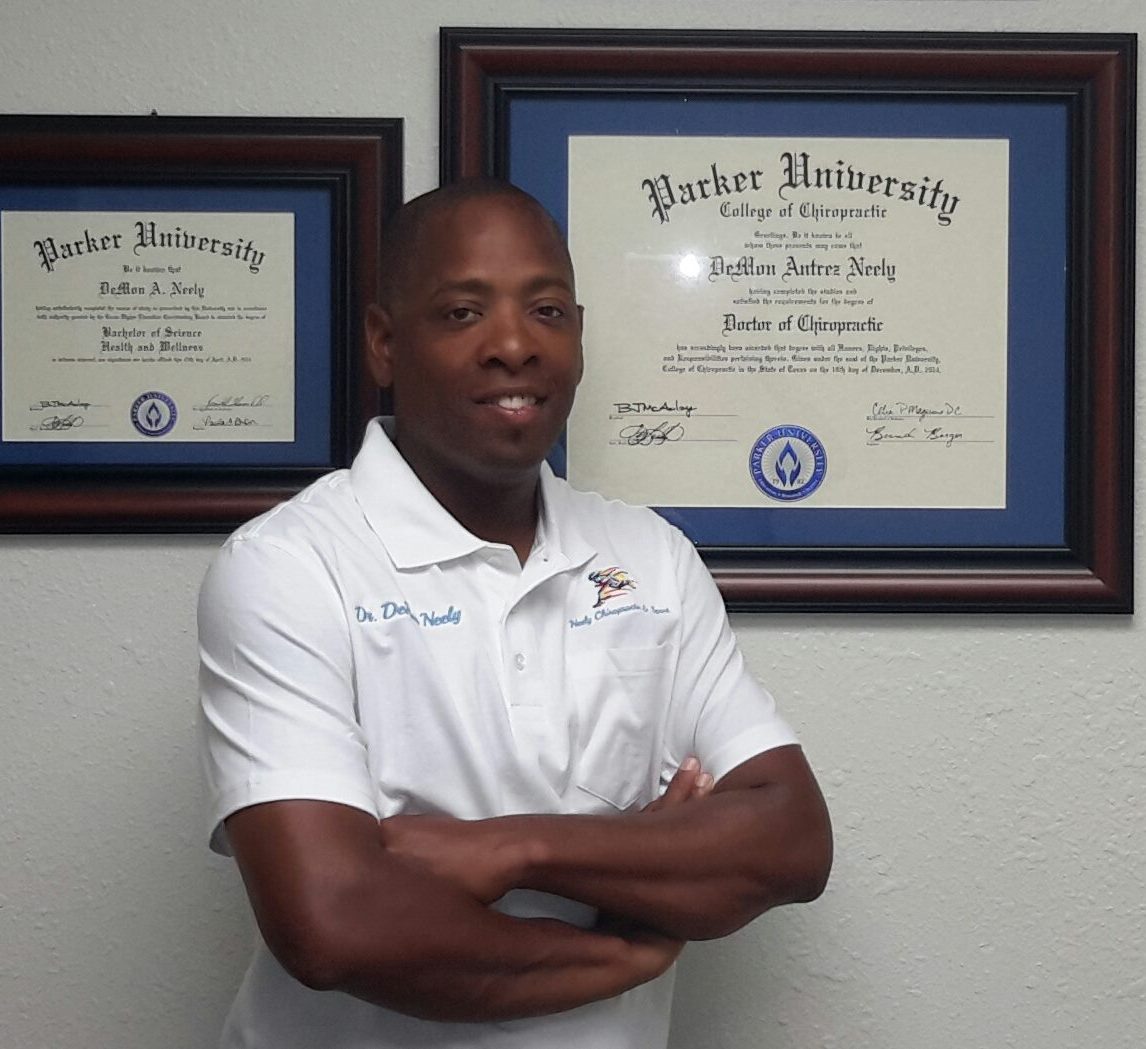 Dr. DeMon Neely was born and raised in Dallas, Tx. After graduating high school he attended Lamar University and the University of North Texas (UNT) majoring in biology. After UNT Dr. Neely worked as a microbiologist at LabCorp for over nine years. During the latter stages of his time at LabCorp, Dr. Neely, began to ask himself if there was another aspect of healthcare that would allow him to better use his desire to help others. As he began to do some research he felt chiropractic would be the best avenue to fulfill this desire.